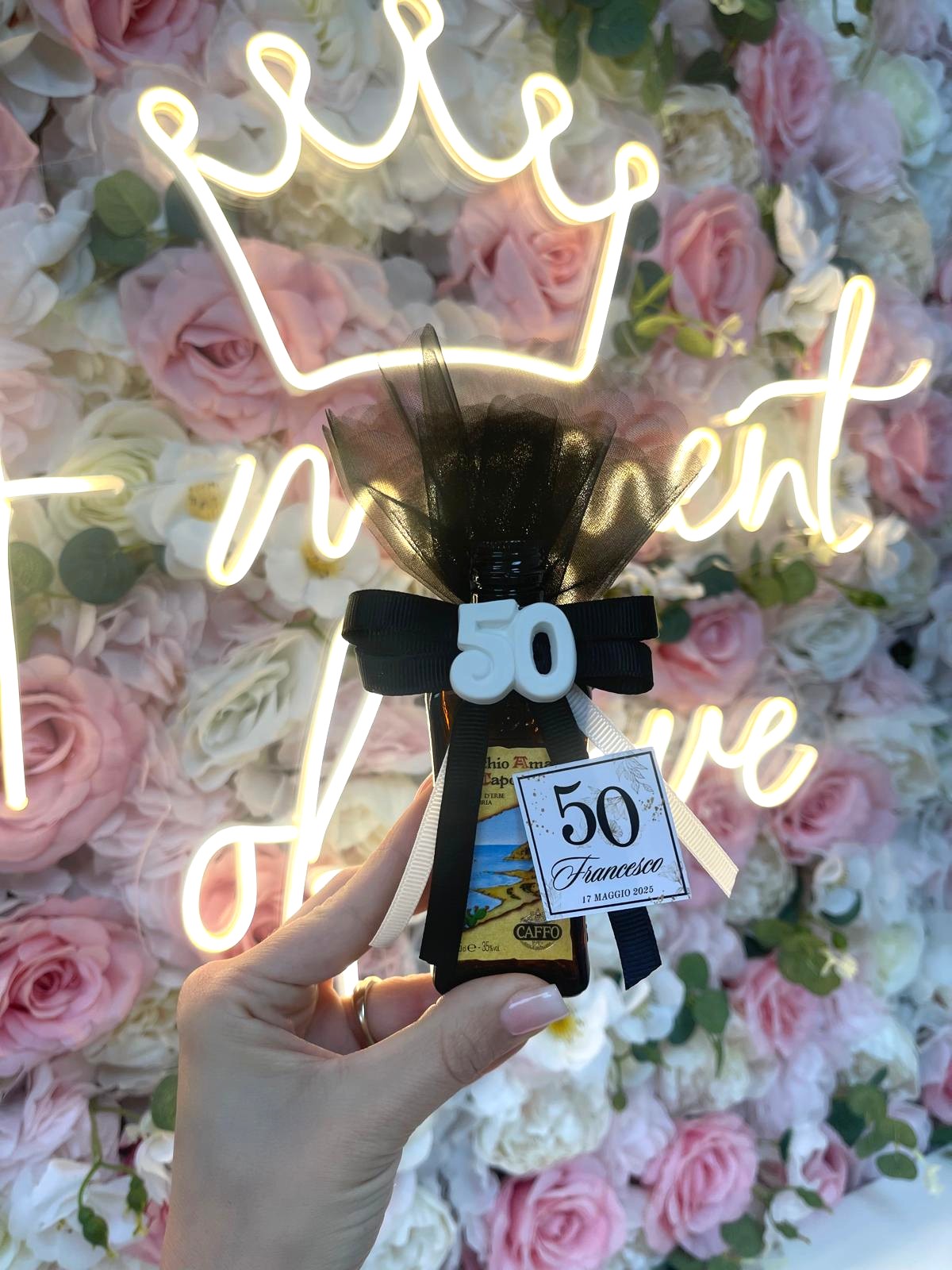 Miniatura amaro del capo, con velo 5 confetti e tag personalizzato