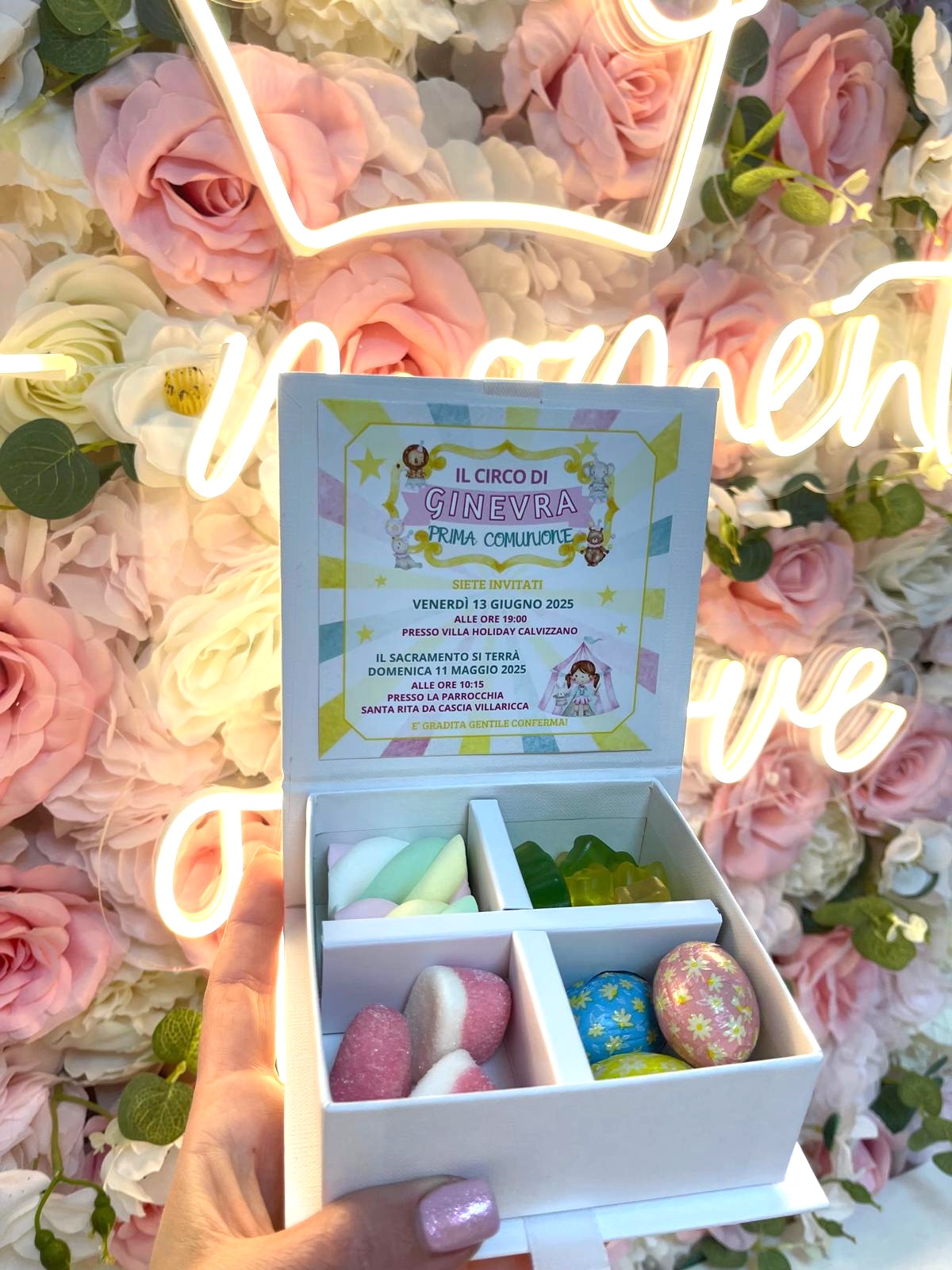 Le scatoline sono personalizzate con i dati del tuo evento.