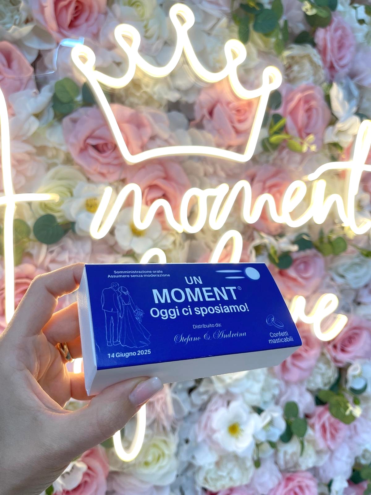 Le scatoline sono personalizzate con i dati del tuo evento.