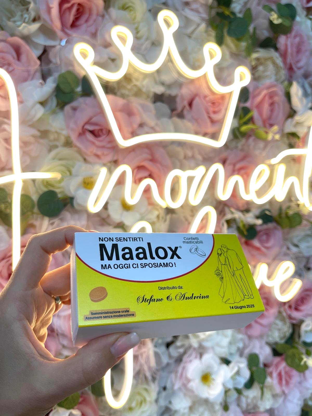Le scatoline sono personalizzate con i dati del tuo evento.
