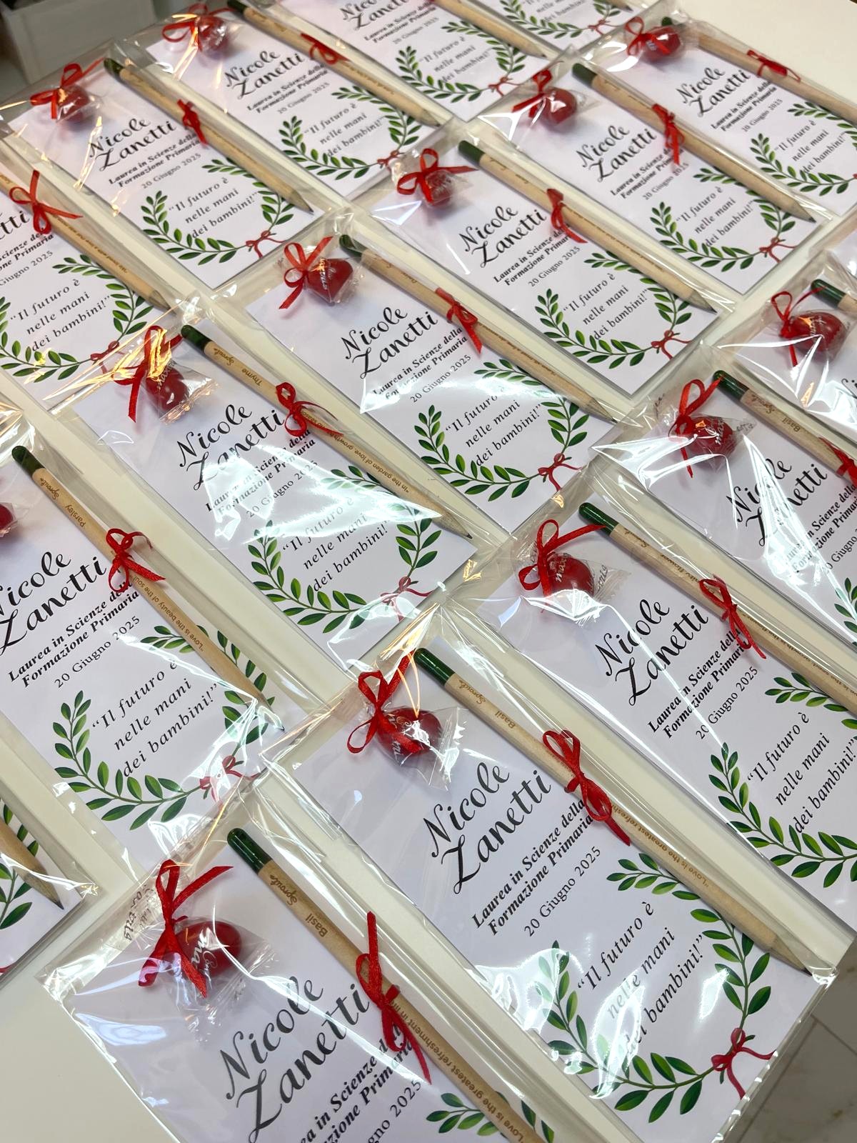 Segnalibro con matita piantabile + confetto + bustina trasparente esterna.